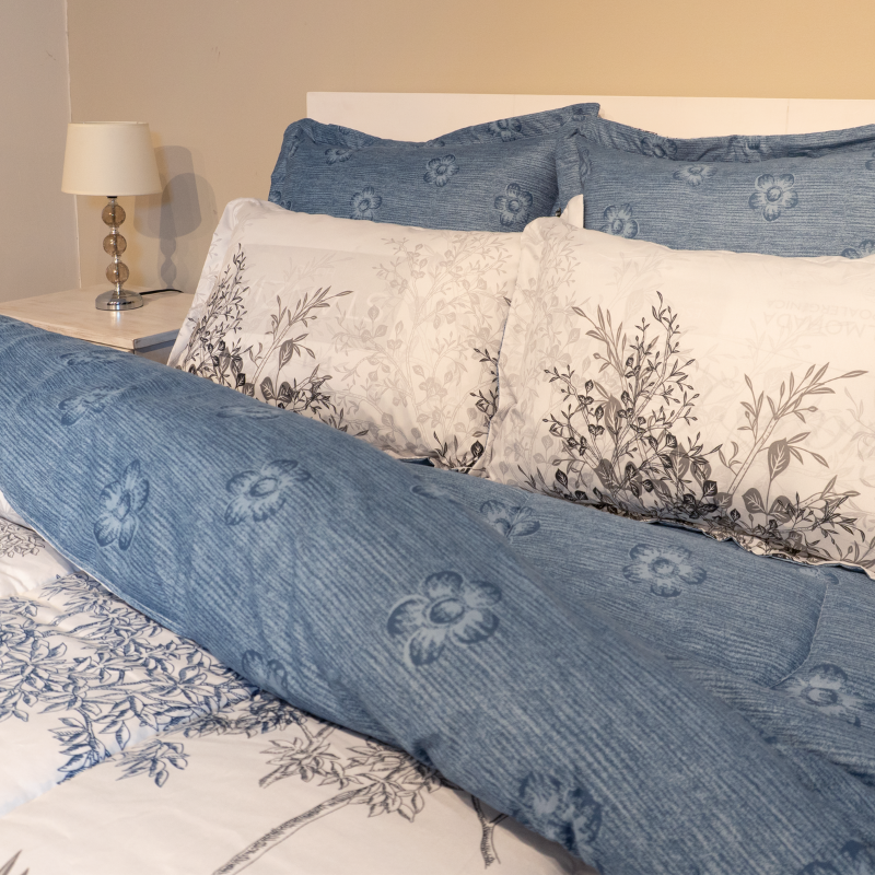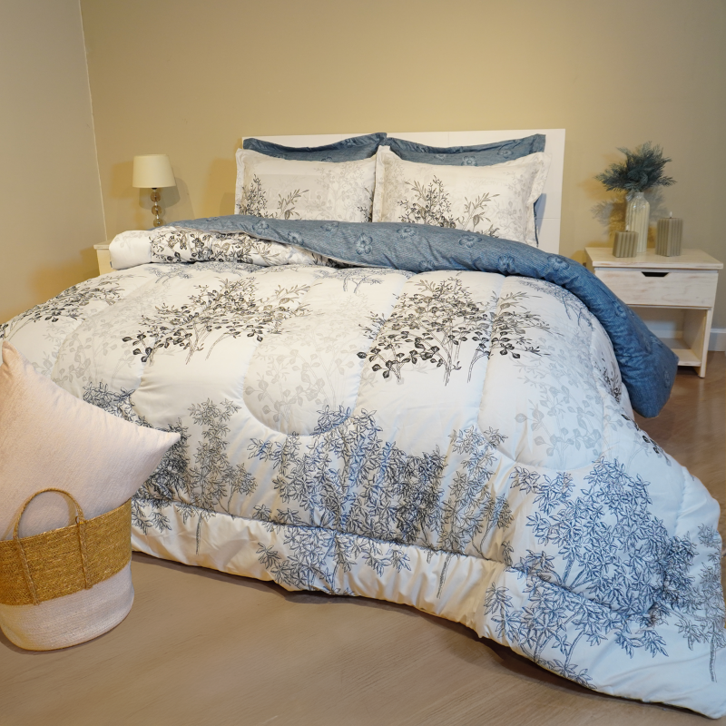 COMBO EDREDON + JUEGO DE SÁBANA SPAZIOS BOTANICO AZUL