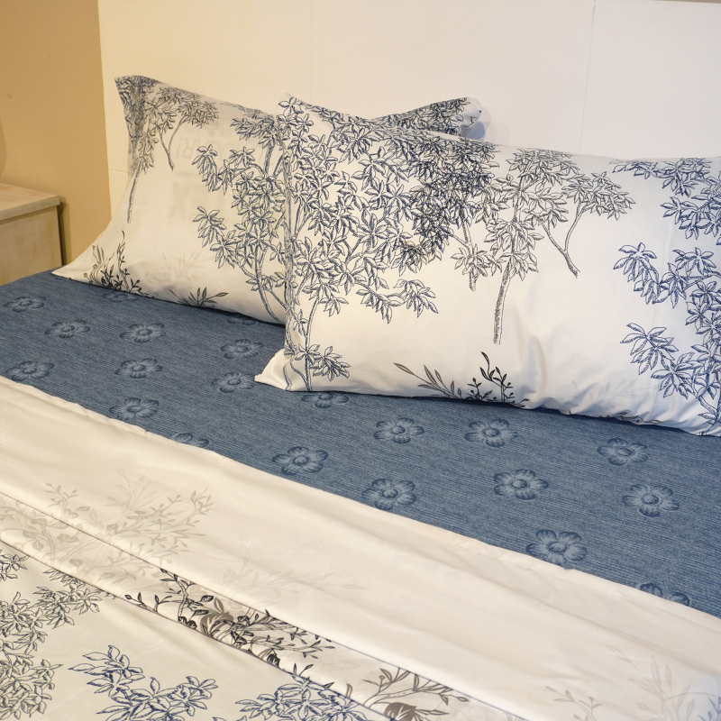 JUEGO DE SÁBANA SPAZIOS BOTANICO AZUL